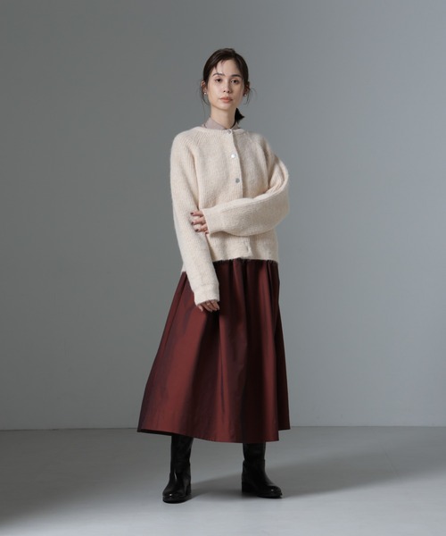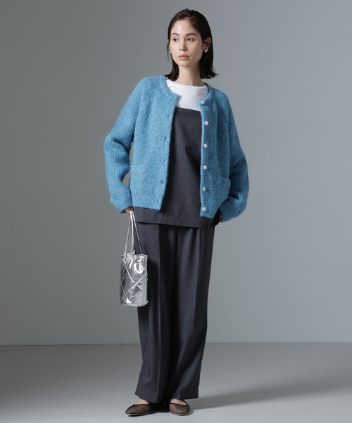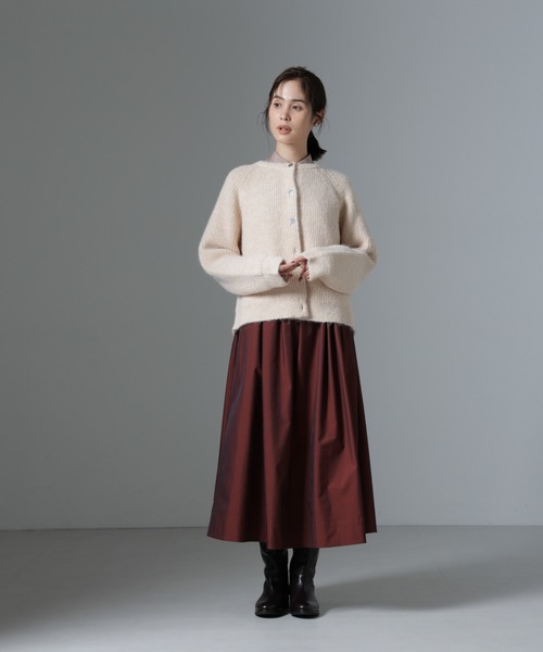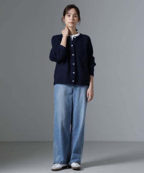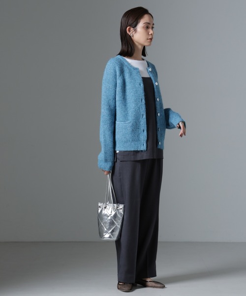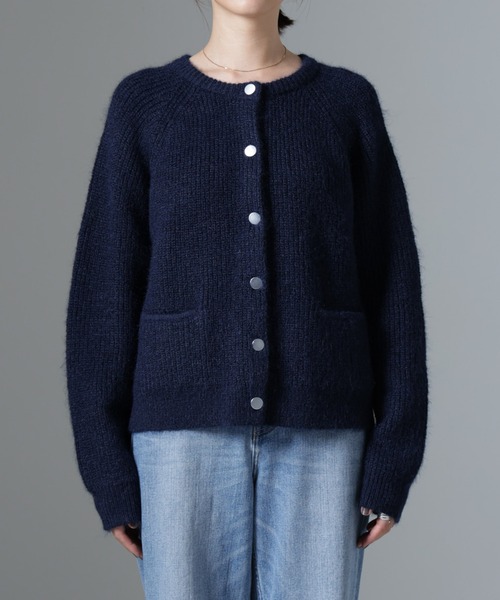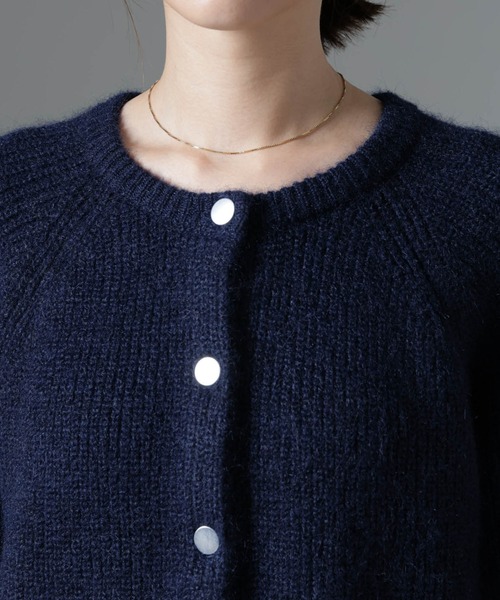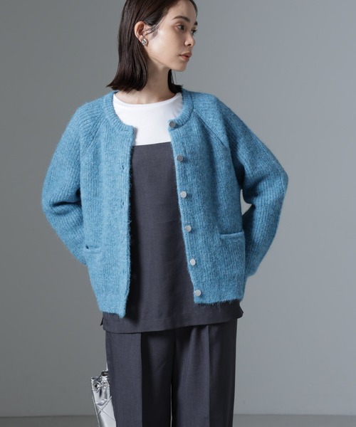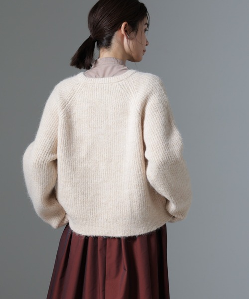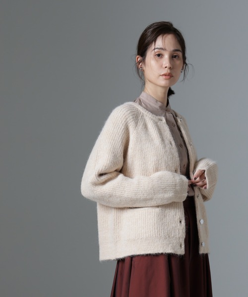 片畦編みのざっくりとした編地が、温かみのある表情のクルーネックカーディガン。ふわっとした柔らかさや程よくボリューム感のある素材も可愛らしいポイント◎。羽織からプルオーバーまで様々な着こなしが楽しめる一枚です。